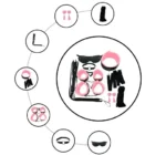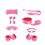 Pink & Black 8 Pcs set BDSM Bondage Kit Handcuffs