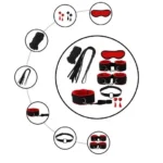 Red & Black 8 Pcs set BDSM Bondage Kit Handcuffs